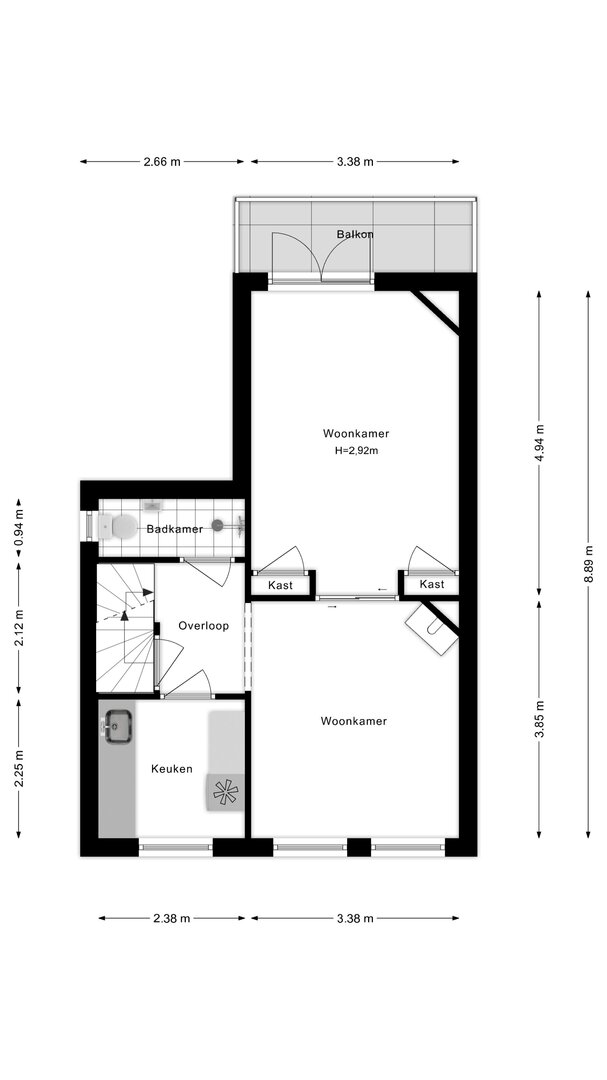 **Indeling die klopt** We nemen je even mee: via de trap bereik je de woning. De royale woonkamer met balkon op ZO nodigt uit tot lange avonden natafelen, lezen of Netflixen – licht genoeg dankzij de grote ramen en prettig uitzicht over de straat. De authentieke, gesloten keuken geeft jou alle ruimte om je eigen droomkeuken te plaatsen. Aan de overloop vind je ook een douche-, toiletcombinatie. Op de bovenverdieping vind je een meer dan riante slaapkamer, een tweede toilet en een fijne werkkamer.