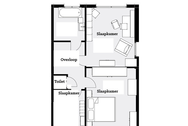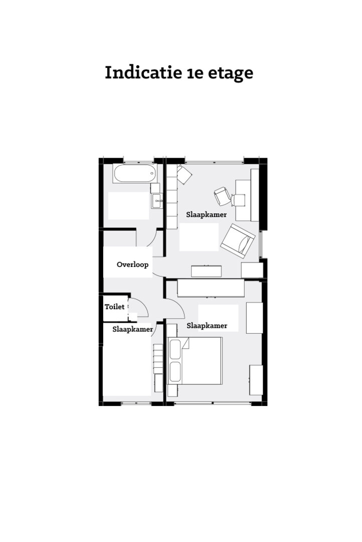 Om je enig idee van de plattegronden te geven, heeft de makelaar zelf wat gespeeld met een tekenprogramma, zodat je in grote lijnen een idee krijgt. Wat je ziet is zeker niet de verkooptekening en al helemaal niet de bouwtekening (de originele tekening zit wel in de bijlage).