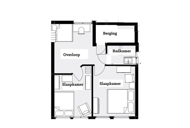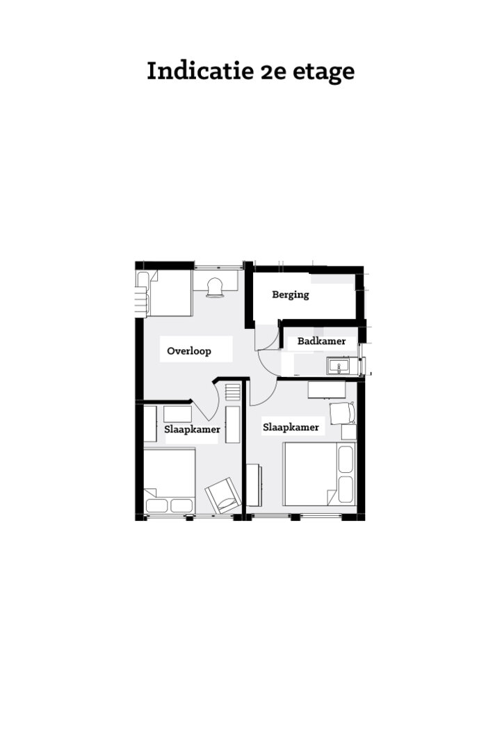 2e Etage: Een grote overloop met meerdere mogelijkheden, weer twee royale slaapkamers, een goede bergruimte en een badkamer met wastafel en inloopdouche.