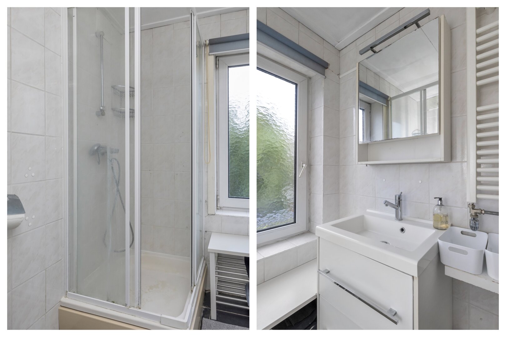 Je merkt het meteen als je binnenkomt: de authentieke sfeer van dit dubbel bovenhuis. Hoge plafonds, mooie paneeldeuren, veel lichtinval, en natuurlijk die typisch jaren ’30 erker aan de voorzijde van de woonkamer. Het uitzicht over het plein hier is elke dag weer genieten, of de kinderen nu spelen of je er gewoon zelf even lekker bij gaat zitten met een kop koffie.