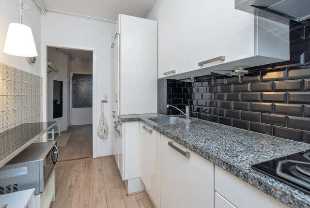 The living room is a wonderful place to spend time together or just recharge your batteries after a busy day at work. With the sunny south-facing balcony, you can open the French doors and enjoy that wonderful indoor-outdoor experience. No fuss, when the sun shines, your lounge area is ready! The kitchen is also directly adjacent to the balcony: ideal if you want to have breakfast outside in the morning sun or enjoy a meal outside on long summer evenings.