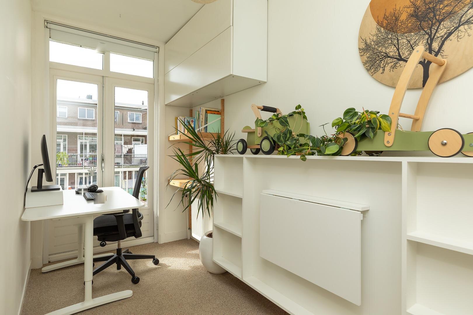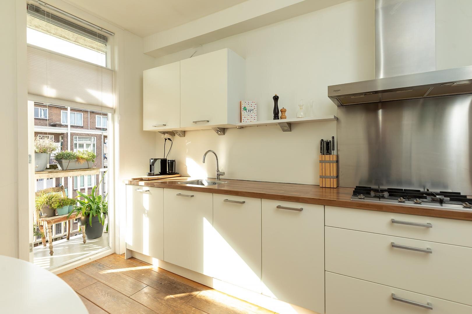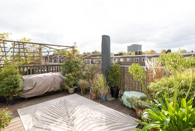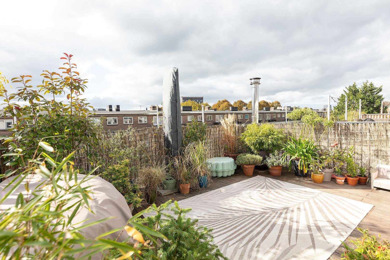 Ruim en speels ingedeeld appartement met drie goede slaapkamers, lichte woonkamer, woonkeuken met balkon, luxe en moderne badkamer en een heerlijk zonnig dakterras! In 2022 en 2023 is de 4e verdieping grondig verbouwd en de indeling van het appartement gewijzigd met een inpandige trap.