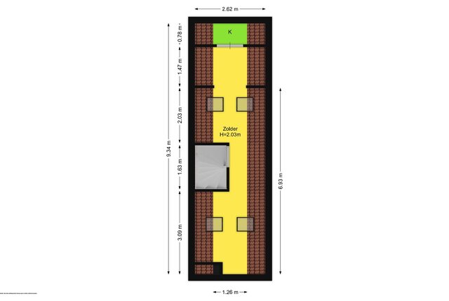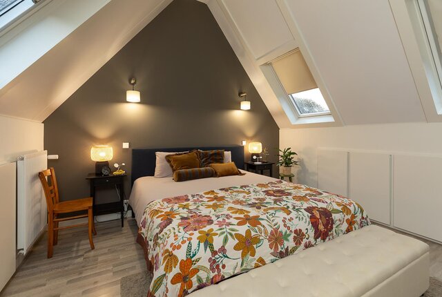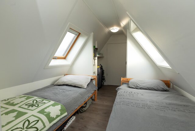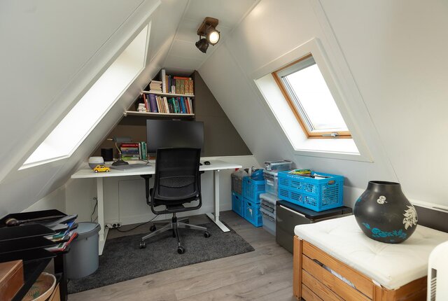 Tweede verdieping met de 5e slaapkamer voorzien van 4 dakramen en een bergkast met hierin de WTW unit.
