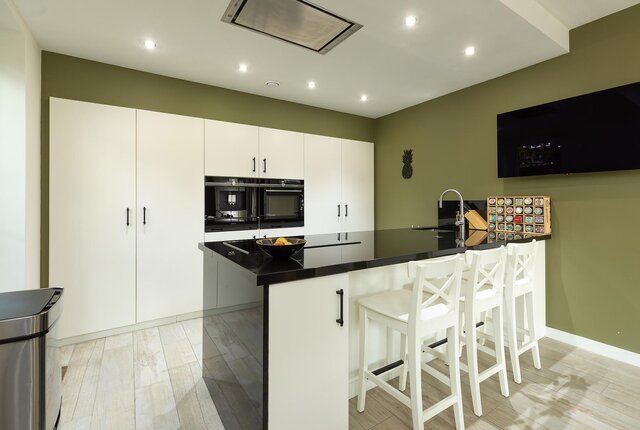 • 17 zonnepanelen, triple beglazing, alle kamers voorzien van airco, etc.;