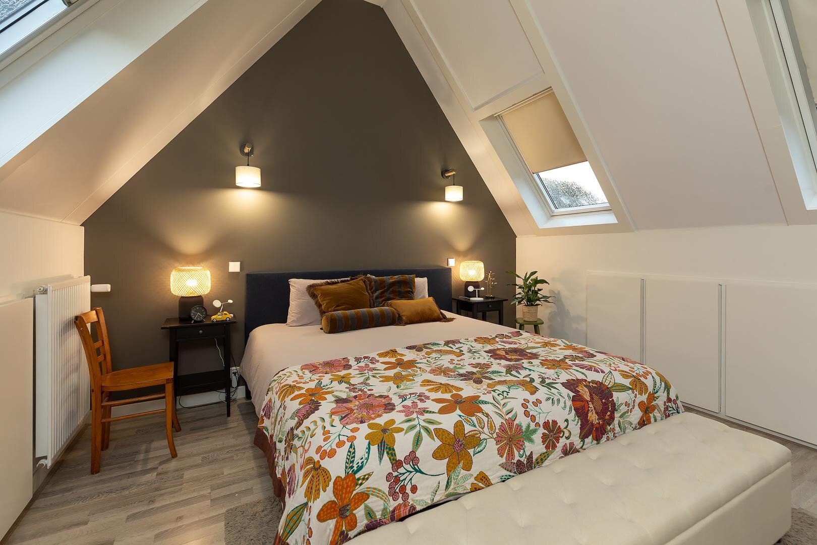 Tweede verdieping met de 5e slaapkamer voorzien van 4 dakramen en een bergkast met hierin de WTW unit.