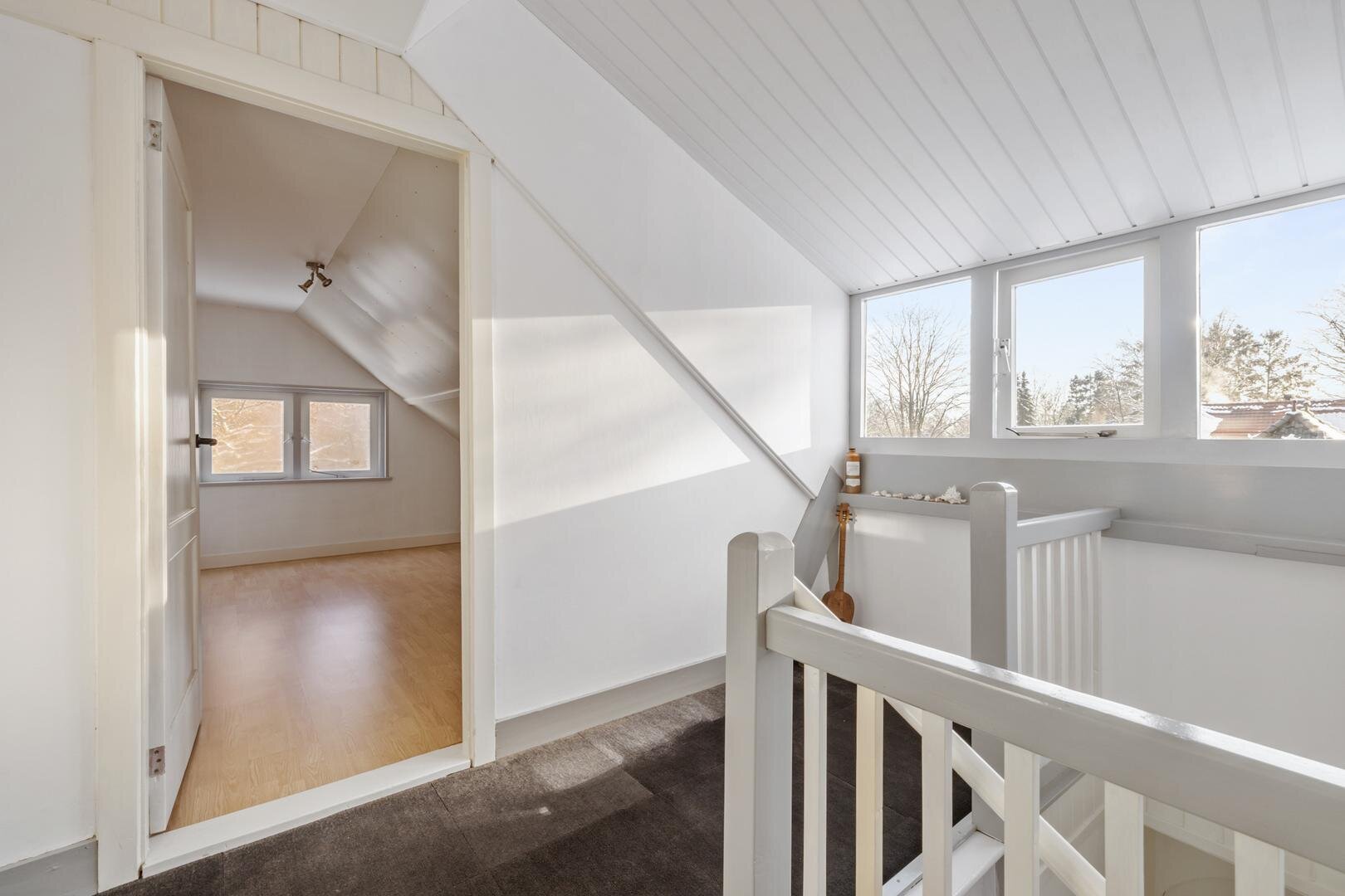 Tweede verdieping: lichte overloop, zowel voor als achter een gezellige slaapkamer.
